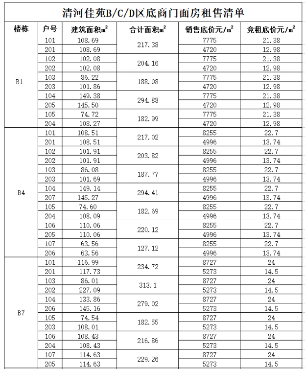 附件:水岸花園項(xiàng)目和清河佳苑項(xiàng)目商業(yè)用房租售清單